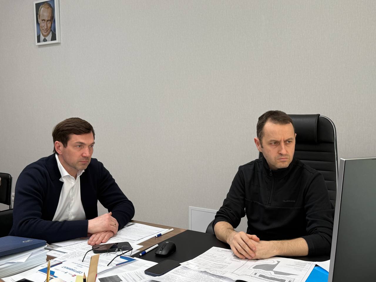 День начал с рабочего совещания с дорожными подрядчиками. Потепление и отсутствие снегопадов радуют, но в то же время вскрывают ряд срочных задач.