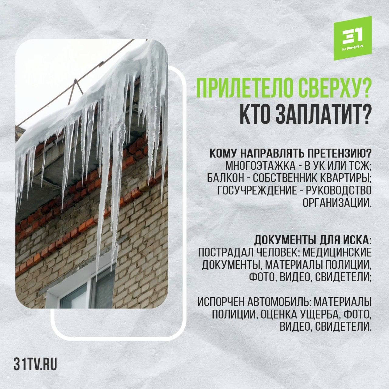 Опасные сосульки. Как получить компенсацию в случае «ледяного ЧП»