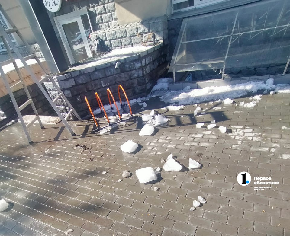 В Челябинске ледяная глыба разбила козырек кафе