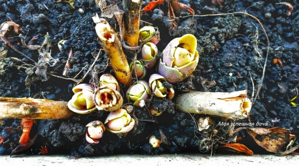 - Очистка от земли и удаление подмерзших стеблей;