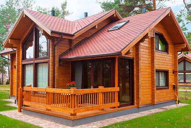 Не стоит забывать об одном из самых популярных применений древесины — строительстве русских бань. Баня, возведенная из натурального бруса, сочетает в себе не только красоту, но и отвечает всем требованиям: от качества до удобства эксплуатации. С помощью этого материала можно создать как одноэтажные, так и многоквартирные бани с уютными террасами или красивыми крыльцами.