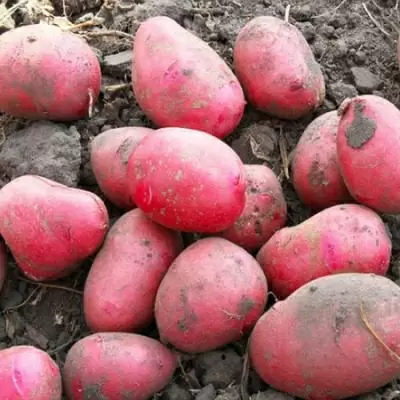 Клубни формируются компактно около материнского растения, что упрощает процесс сборки. Они обладают продолговато-овальной формой и гладкой красной кожурой. Это делает их удобными для обработки и сокращает количество отходов в кулинарии благодаря мелкой глубине залегания глазков.