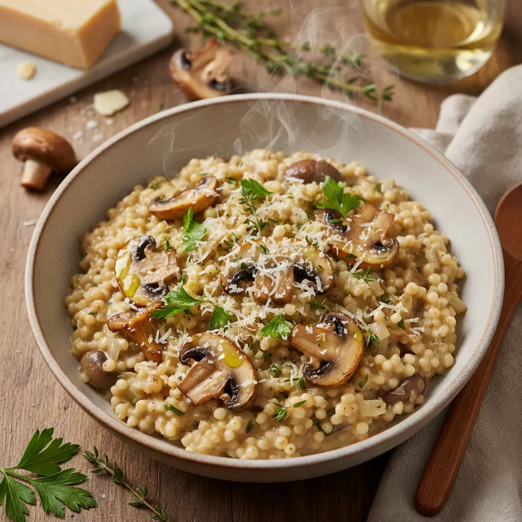 Пшенетто – это свежий взгляд на традиционное ризотто, где в качестве основы используется пшено. Благодаря этому ингредиенту, блюдо обретает необыкновенную текстуру и ореховый привкус. В данном рецепте пшенетто подается с грибами, однако можно легко адаптировать его, заменив грибы на ваши любимые овощи, такие как спаржа или тыква.