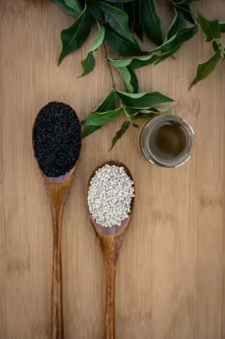 Разница между черным и белым кунжутом заключается в том, что семена первого вида не очищены от оболочки, которая богата антиоксидантами и минералами. Это делает черное кунжутное масло более ценным для традиционной медицины и кулинарии в странах Азии.