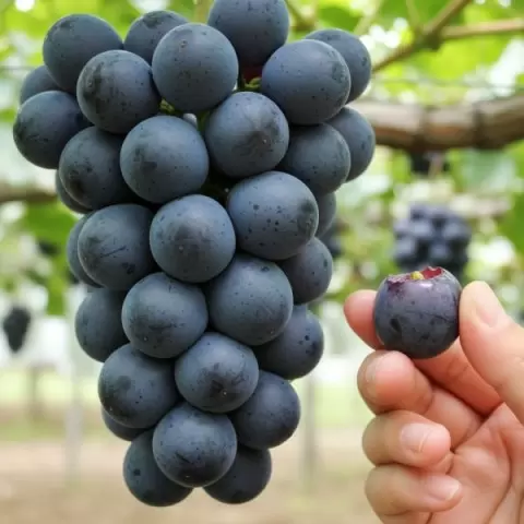 Фуджиминори — это уникальный японский столовый виноград, который впечатляет не только своими габаритами, но и необычным вкусом. С этим сортом можно смело поэкспериментировать: его крупные чёрные ягоды способны привлечь внимание даже самых требовательных гурманов. Он отличается мощным ростом и неплохой устойчивостью к болезням, хотя требует укрытия на зиму. Разберёмся подробнее в его характеристиках и особенностях ухода.