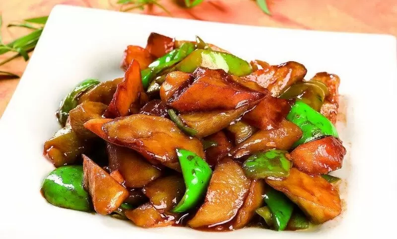 - В глубокой сковороде разогреть несколько ложек растительного масла, добавить нарезанный лук и чеснок, обжарить до запаха. Затем влить бульон, темный и светлый соевый соус, добавить сахар, перемешать. В конце добавить обжаренные овощи, довести до кипения и влить раствор кукурузного крахмала, помешивая до загустения. Подавайте с удовольствием!