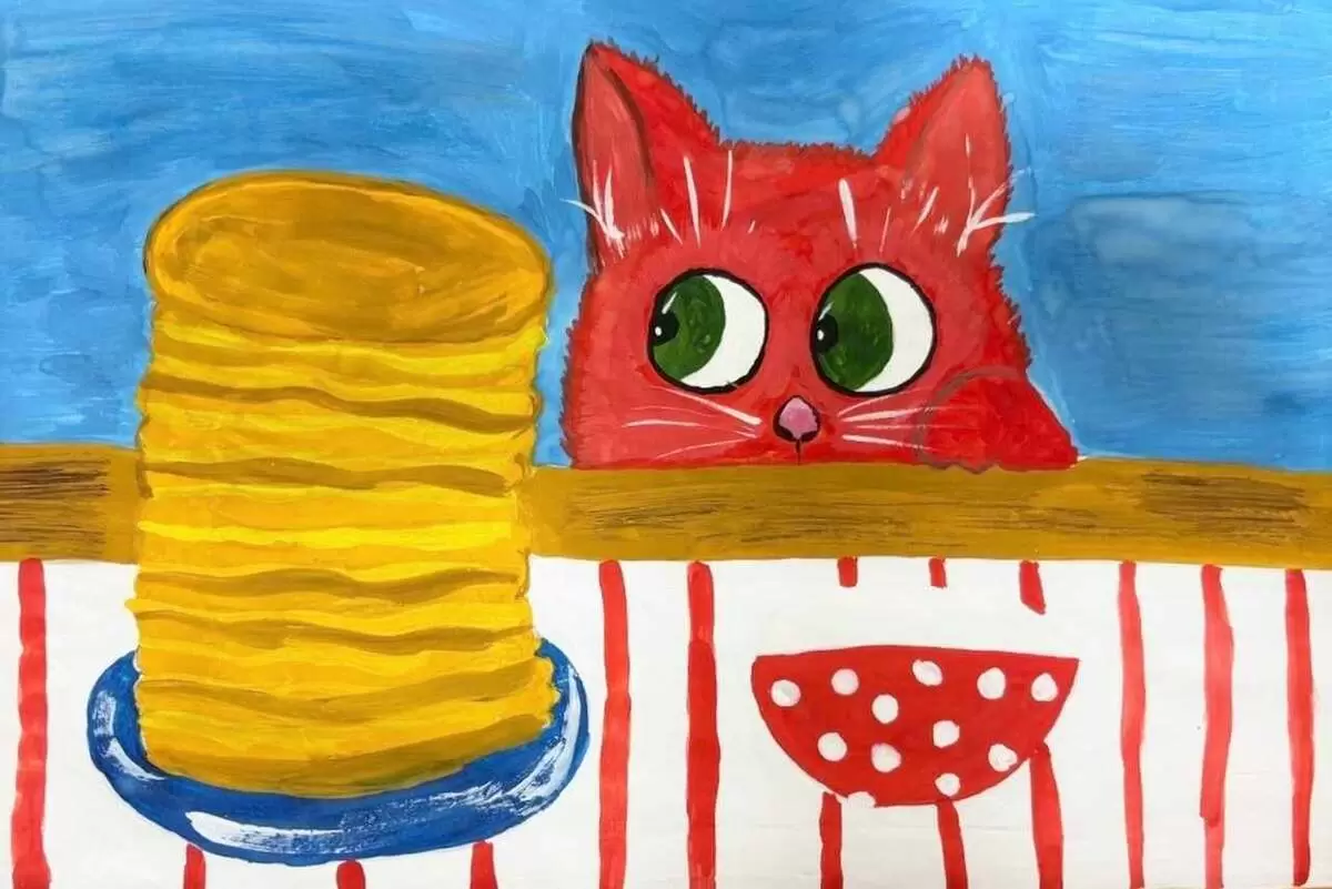 На рисунке Анисимова Ярослава из детского сада №125, наполненном яркими красками, также можно увидеть элементы празднования Масленицы.