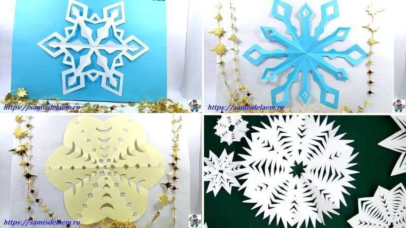 Снежинки могут быть не только белыми, но также цветными. Попробуйте сделать «зимние цветочки» с округлыми лучами или использовать различные оттенки, чтобы создать настоящий калейдоскоп декора. Также стоит предложить детям поэкспериментировать и вырезать свои уникальные модели.