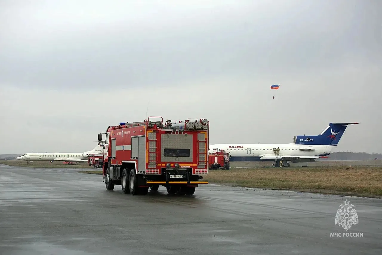В аэропорту Челябинска на учениях тушили самолет и спасали пассажиров