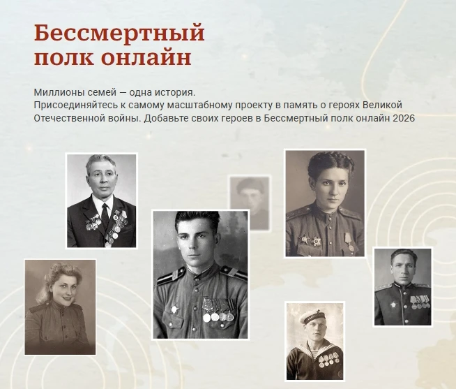 Южноуральцы могут присоединиться к акции онлайн. Для этого необходимо разместить историю своего ветерана на сайте «Бессмертного полка» 2026.polkrf.ru/. Заявки принимаются до 6 мая.
