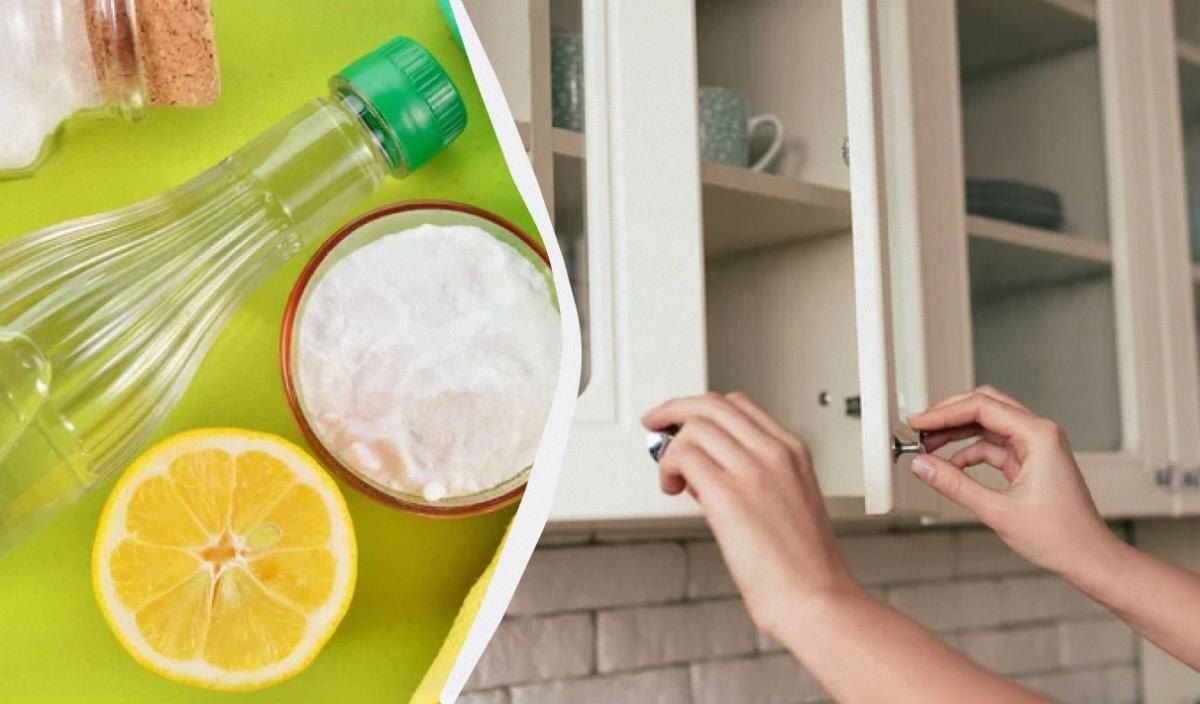 Однако стоит учесть, что уксус имеет характерный запах. Чтобы избежать неприятных запахов, лучше проветривать помещение во время уборки. В качестве альтернативы можно использовать лимонный сок, разведенный с водой в равных пропорциях. Лимон не навредит поверхности шкафчиков, а оставит после себя свежий аромат.