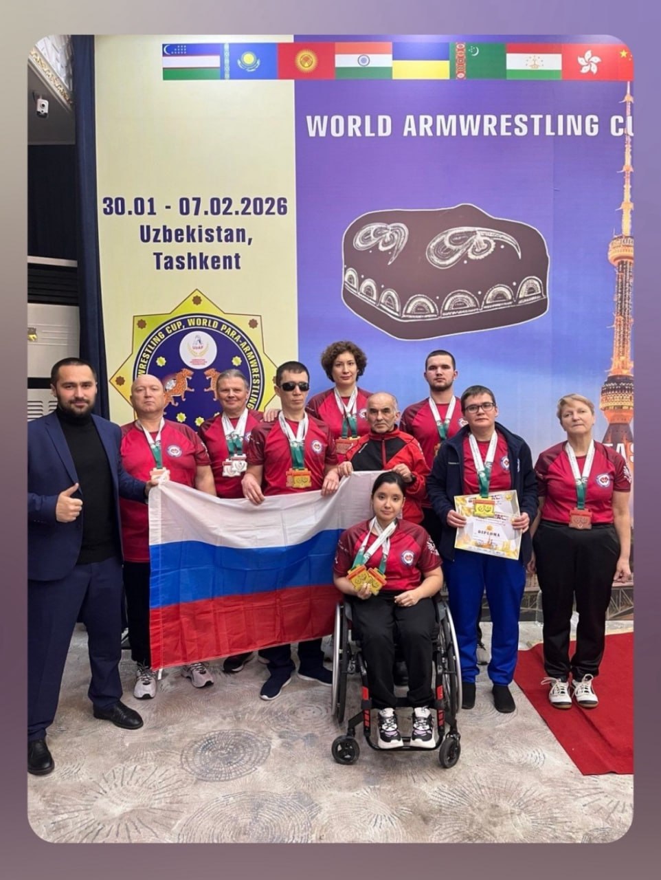 С 30 января по 7 февраля в Ташкенте проходит Кубок мира по армрестлингу и пара-армрестлингу среди всех возрастных категорий. В нем принимают участие около 300 спортсменов из Индии, Казахстана, Кыргызстана, Таджикистана, Монголии, Украины, Беларуси и Китая.