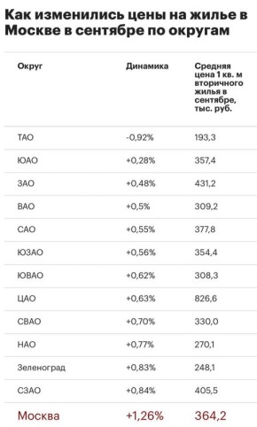 Снижение цен на вторичное жилье в Москве в сентябре почти прекратилось — оно зафиксировано лишь в Троицком административном округе (ТАО) на 0,92%, до 193,3 тыс. руб. за кв. м. В июле отрицательная динамика была в пяти округах, в августе — в четырех из...