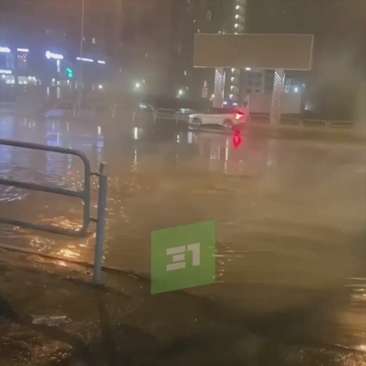 Из канализационного люка бьет фонтан.В некоторых районах города пропало электричество. Дома переключают на резервные схемы. В Центральном районе свет уже появился.